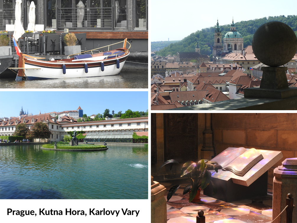 Prague, Kutna Hora and Karlovy Vary. A lot of cathedrals, walls, rooftops, windows, streets, water etc.